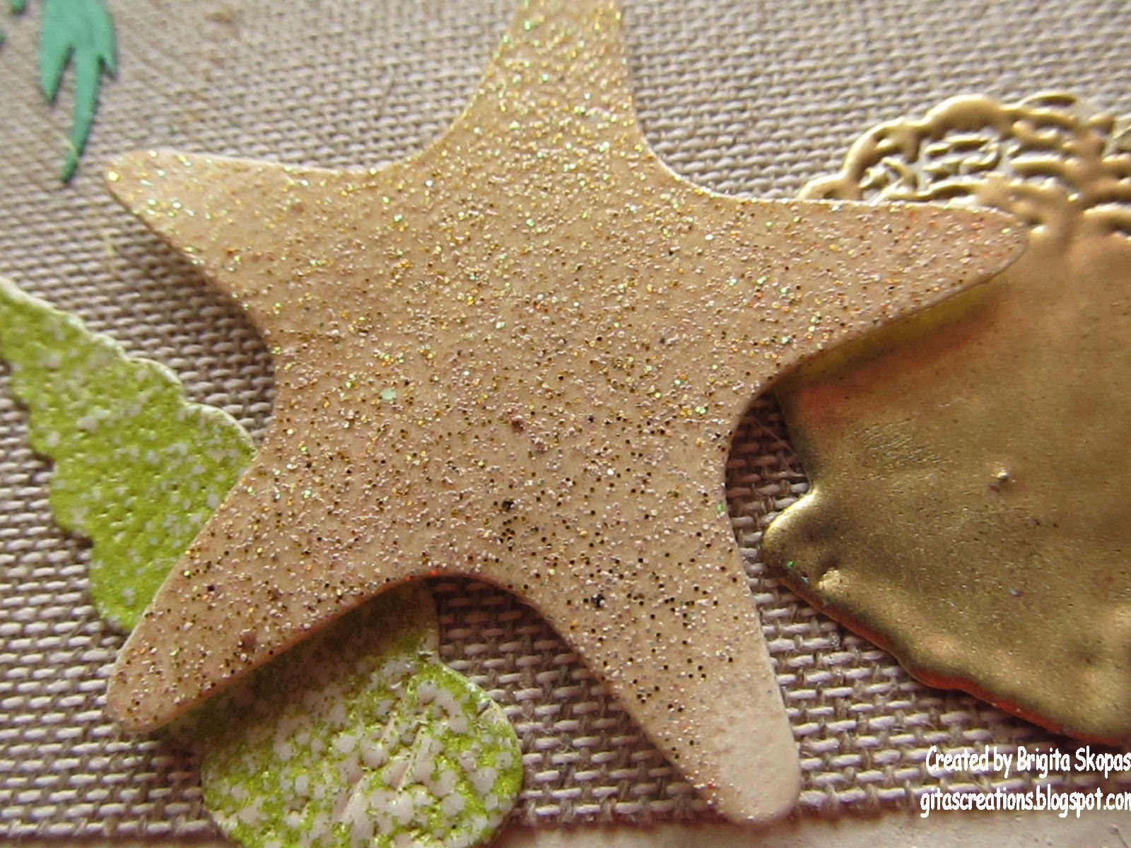 I used Sparkle N Sprinkle Mojito, Hit The Beach, and Super Thick Gold embossing powders.